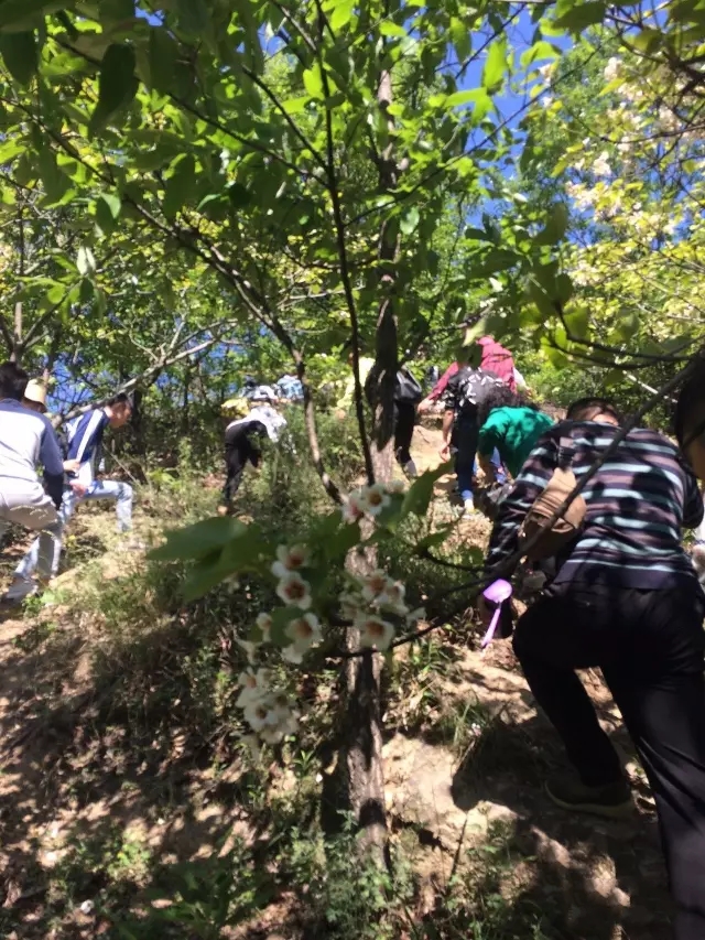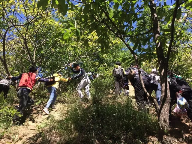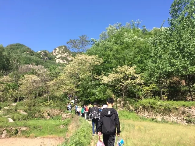 一路上我們都在討論著有關(guān)走野線的技巧,有的說走大路好,路上人多,興奮、熱鬧;有的說走小路好,新鮮、刺激;還有的建議去的時候走小路,回來時走大路,這樣什么都能體驗到?就這樣帶著憧憬和想象我們來到了魯山腳下。下了車的我們顯得異常興奮,邁著輕快的步伐,很快就到了魯山的山腳。抬頭望去,看著這高大聳立的青山,同學們更加豪情萬丈!拿起手機來了一張,在拍完合影后,我們就開始了野線之旅-走下繩