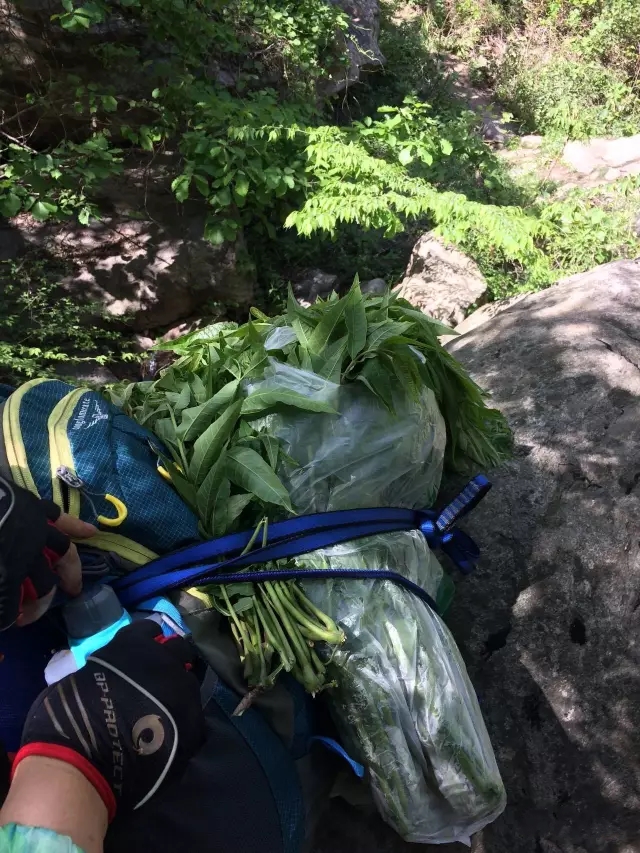 整裝休息時,同行的大姐采了好多野菜,給我們講述她們的驢友線路,緊張又刺激。臨別時還分了一半野菜給我們,高興壞了