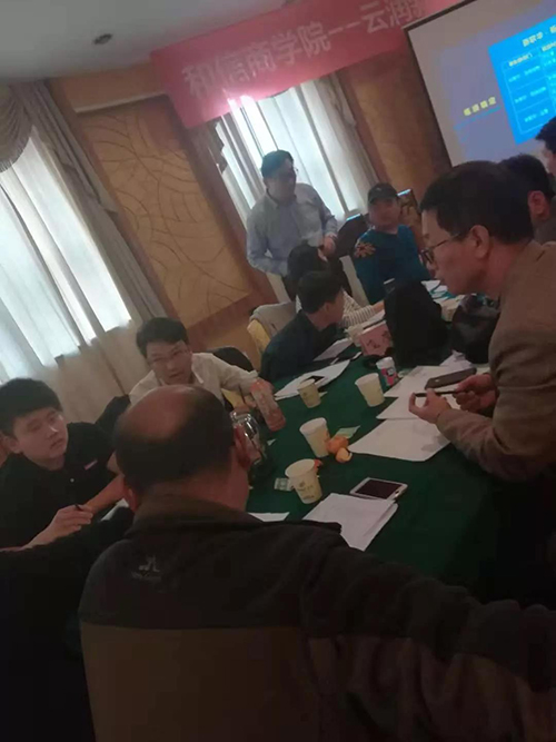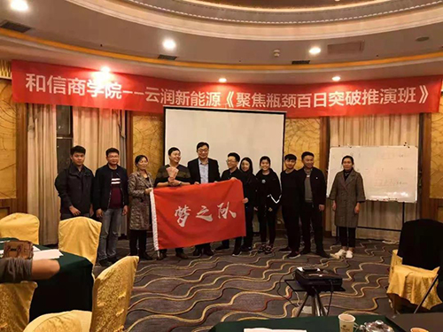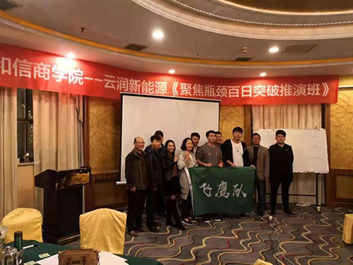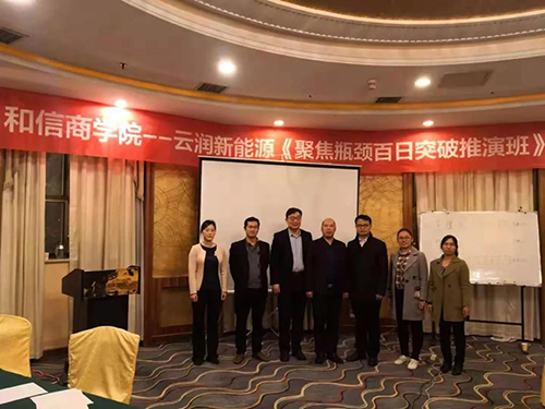 2018年11月3日—4日,云潤新能源針對(duì)企業(yè)發(fā)展過程中出現(xiàn)的業(yè)績瓶頸問題請(qǐng)和信商學(xué)院共同進(jìn)行專項(xiàng)研究培訓(xùn)。該培訓(xùn)共持續(xù)兩天一夜,期間商學(xué)院與云潤成員共同梳理業(yè)務(wù)流程、制定考核措施等。